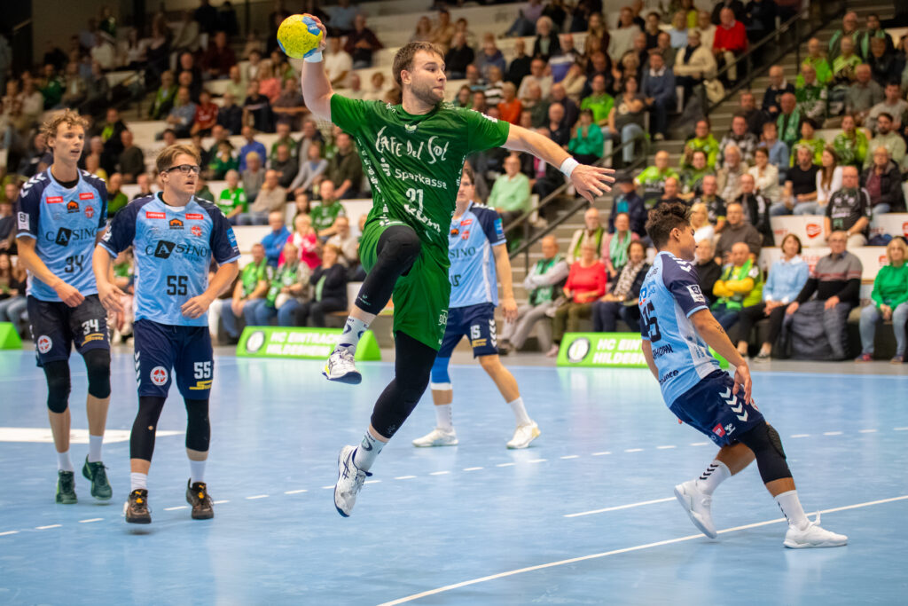 Beim Auswärtsspiel in Hamburg standen am letzten Sonnabend lediglich elf Feldspieler im Kader, besonders im Rückraum gehen die Alternativen zur Neige. Die Knieverletzung von Matteo Ehlers hat sich gottlob nicht als Kreuzbandriss herausgestellt. „Ich rechne aber mit einer Ausfallzeit von rund vier Wochen“ sagt Daniel Deutsch. Mit den langzeitverletzten Luca Hopfmann und Jorit Reshöft fehlen auch weiterhin zwei weitere Rückraumspieler. So liegt die Last auf den verbliebenen Vier. Piet Möller, Philipp Wäger, Jakub Tonar und Florian Billepp sind gottseidank aktuell in guter Form. Auch Jakub Tonar konnte in dieser Woche nicht voll trainieren, dürfte aber am Sonntag dabei sein. Ein Torgarant nicht nur vom Siebenmeterpunkt war in den letzten Spielen Spielmacher Piet Möller, der in seinen bisherigen drei Saisonspielen bereits auf 30 Treffer kommt. Sorgen bereitet unserem Trainerteam aber auch Petar Juric, der an einer Entzündung im linken Arm laboriert und in Hamburg dick bandagiert spielen musste. „Es passt ganz gut, dass wir jetzt nicht die Topgegner vor uns haben, aber auch wenn Leipzig als Letzter nach Hildesheim kommt, braucht es bei meinen Spielern die richtige Einstellung, wenn sie sich das Leben nicht unnötig schwer machen wollen“ ist unser Coach froh, jetzt nicht gegen eines der Spitzenteams antreten zu müssen. Gleichzeitig warnt er aber auch davor, den Gegner auf die leichte Art und Weise besiegen zu wollen. Optimistisch stimmen die letzten Leistungen. Wenig Spieler – viele Tore waren das Motto, so soll es auch gegen Leipzig II weitergehen. „Wir liegen noch drei Spiele zurück, die müssen wir erstmal erfolgreich aufholen“ sagt Deutsch und meint damit, dass sein Team in dieser Phase keine Schwäche zeigen sollte. Verlassen konnte sich unser Trainerteam zuletzt auf beide Keeper, sowohl Leon Krka als auch Jan Wesemann zeigten gute Leistungen. Die Mannschaft hofft, dass die Fans auch gegen den vermeintlich schwächeren Gast am Sonntag in der Arena hinter ihr stehen. Ihrer klaren Favoritenrolle wollen Kapitän Philipp Wäger und seine Mannschaftskameraden jedenfalls mit viel Einsatz und Konzentration gerecht werden. Weil in Hamburg zuletzt auch die Verwertung der Torchancen stimmte, herrscht Optimismus vor bei Mannschaft und Umfeld.